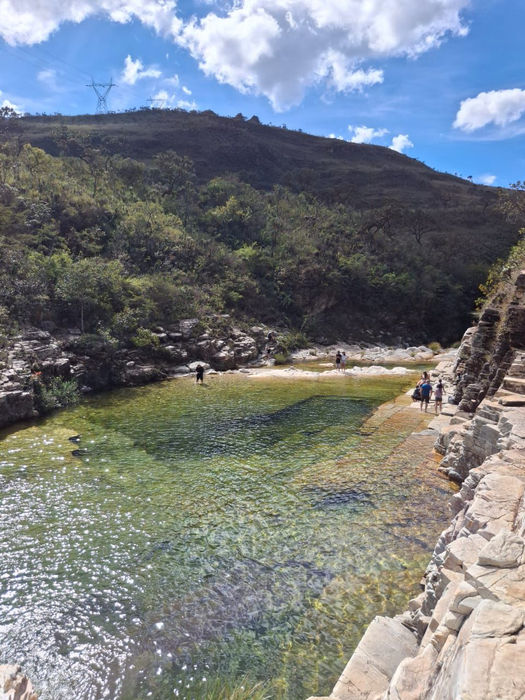 Trilha leve e banho em poço fundo de águas esverdeadas, excelente para fotos e conexão com a natureza