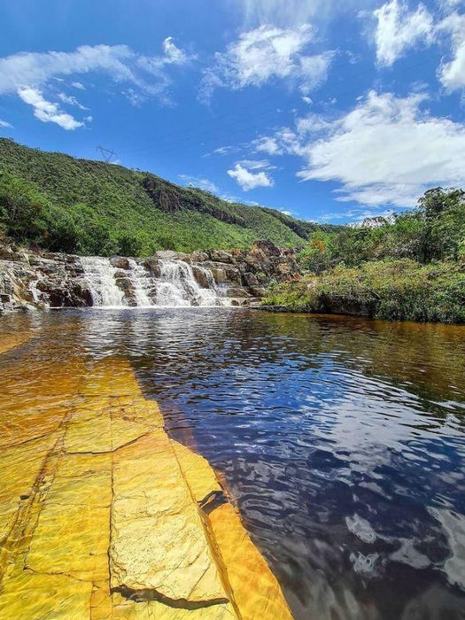 Queda d’água de águas cristalinas e piscinas naturais, ambiente tranquilo e cenário instagramável